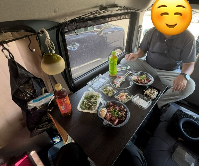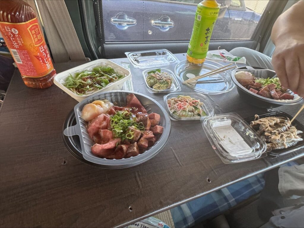 さらに広々、さらにのびのび机も空間もを使えるようになったエブリイで大満足なお昼ご飯タイムになりました。