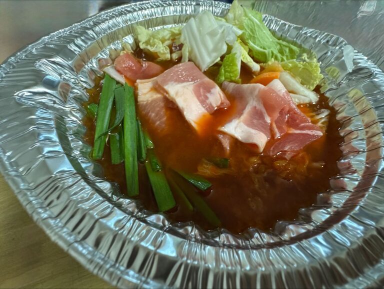 カットされたお肉と野菜とスープ、そして締めの麺まで入ったいたれりつくせり。