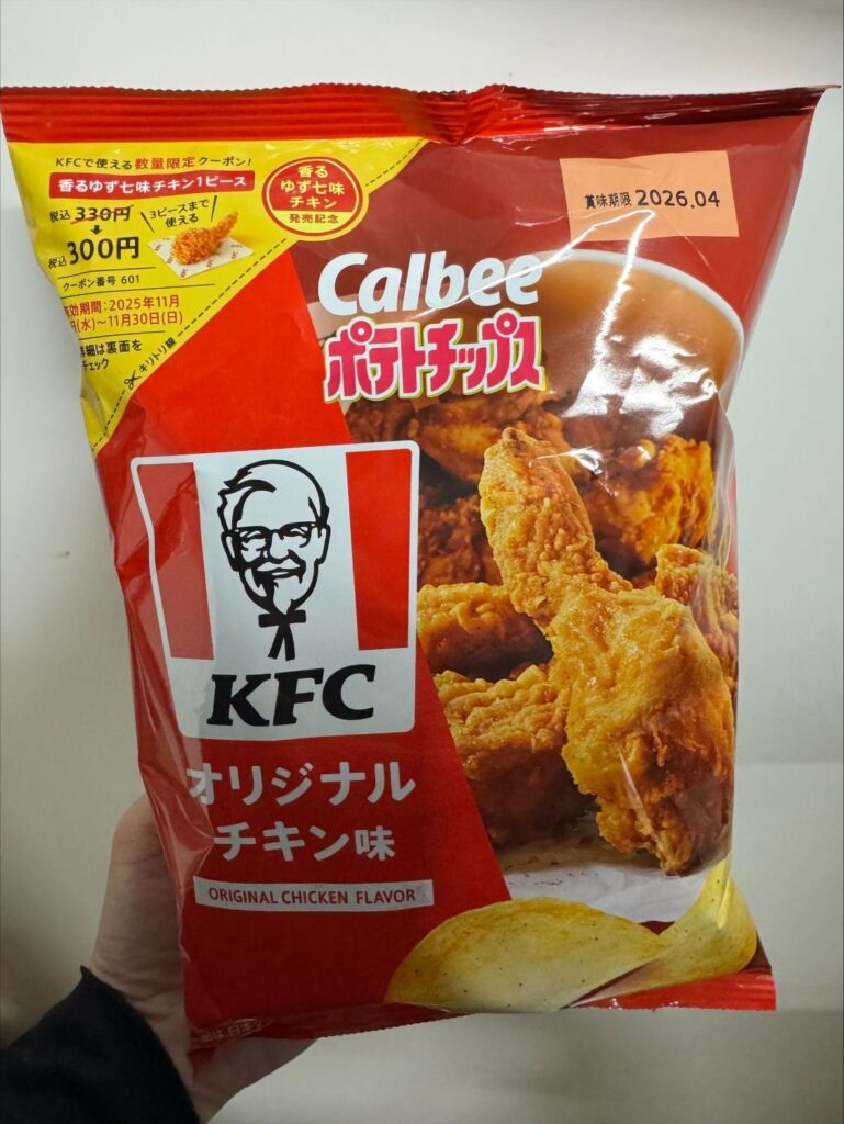 「オリジナルチキン味とゆず七味味の2つ売ってたよ、12月中旬まで売っているそうだよ、クリスマスにいいね♪さっそく食べてみようよ」