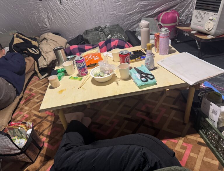 今回はカセットガスボンベ式のファンヒーターも持参しましたが、