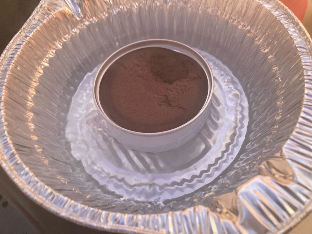 シェラカップはもちろん、メスティンでも少しのお湯を沸かして缶ごと浮かべるだけで完成です。